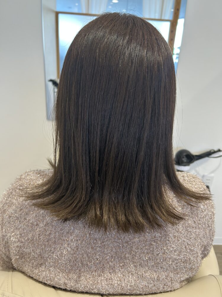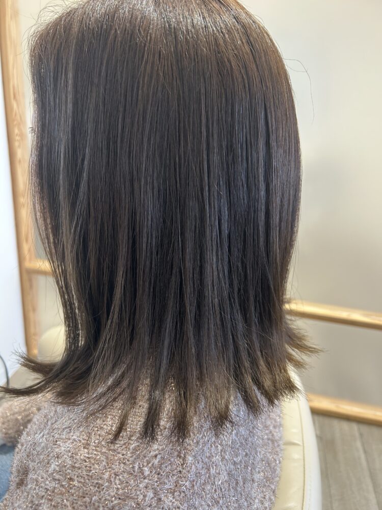 カラーは赤みを抑えたベージュ系の薬剤を選んでいます。