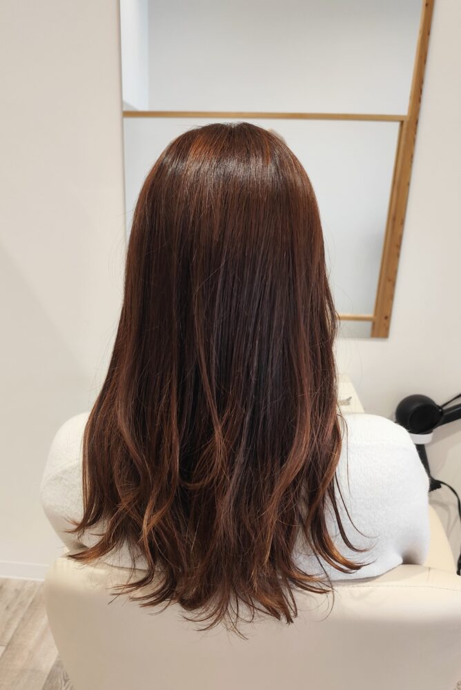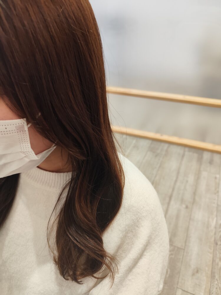 今回はパサつき解消でツヤ感アップ【ブラウンベージュ】のおすすめカラーで、「髪のダメージと色落ち」にお悩みのお客様のスタイル紹介です。