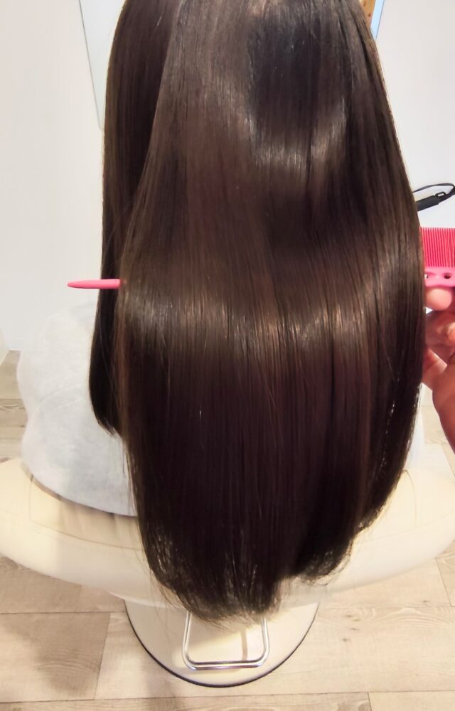 今回のお客様は2ヶ月前に縮毛矯正をされたお客様で、前回も艶髪トリートメントされて縮毛矯正の持ちが良かったと言うことで、またリピートしていただきました。